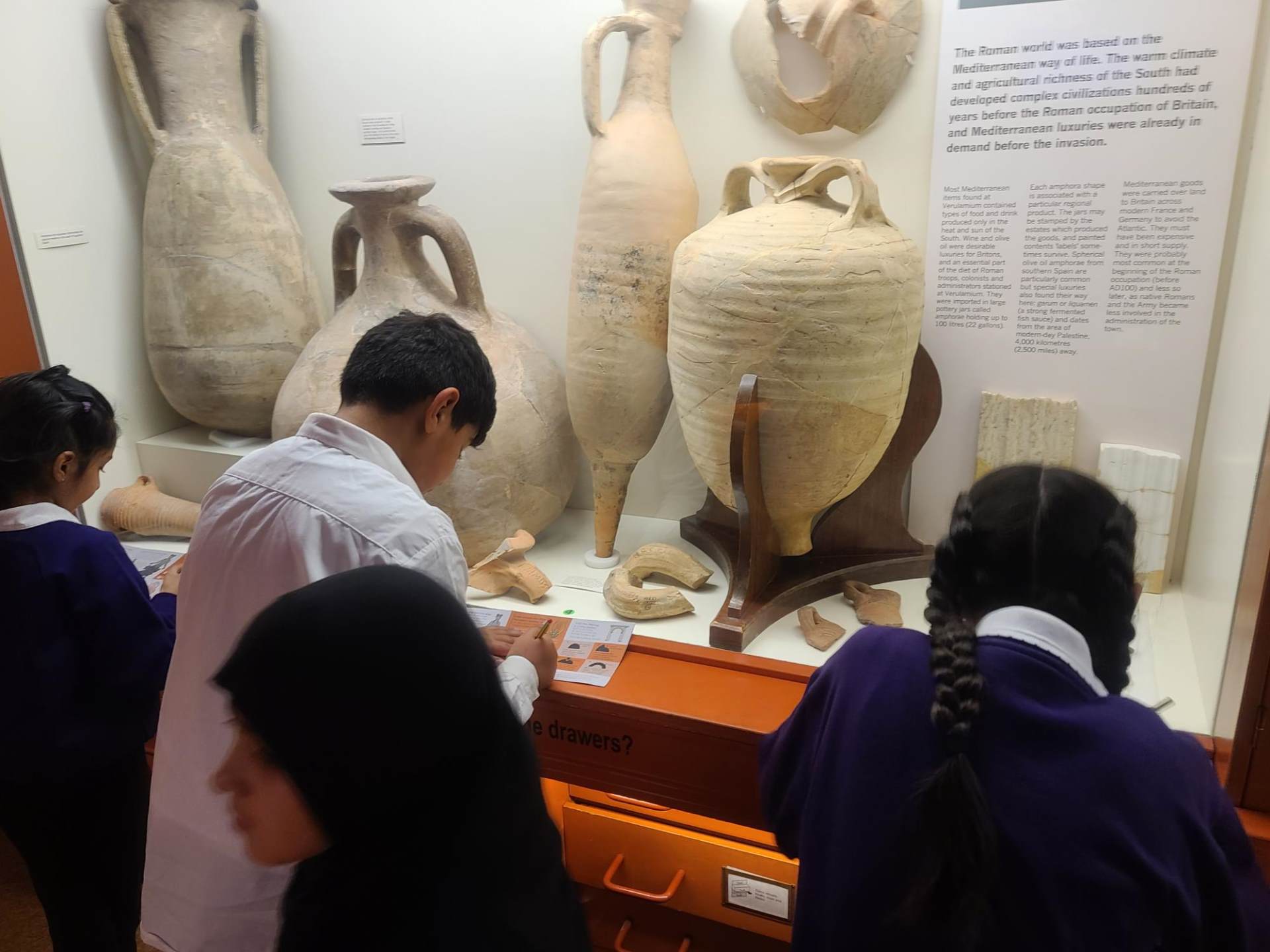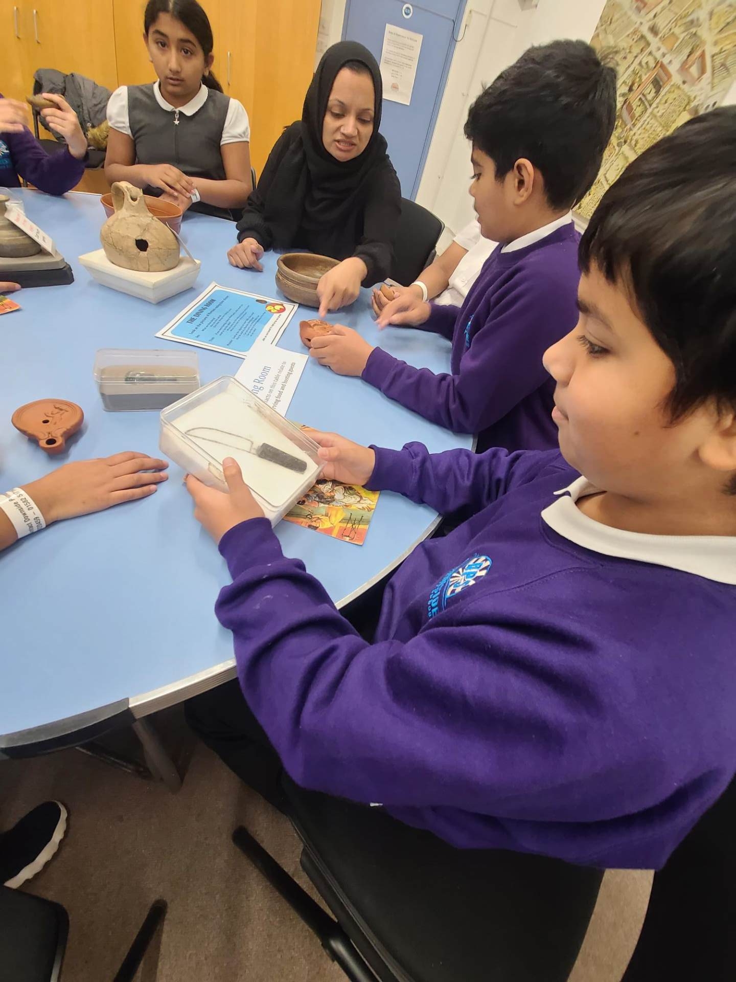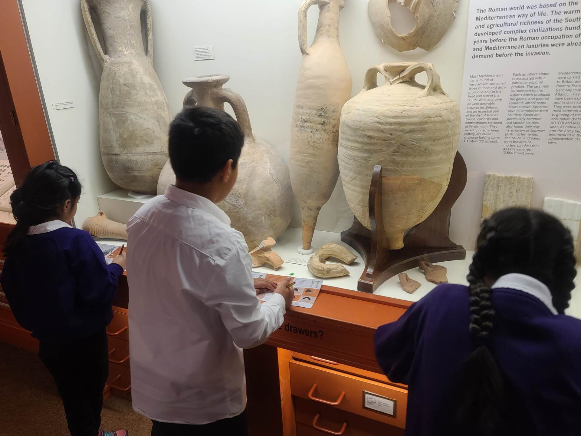 The Year 5 children have been learning about the Romans and as part of the topic they visited the Verulanium in St Albans. During the visit the children gained an understanding of Roman daily life at Verulamium, developed their reasoning and observation skills though object handling and gained specific knowledge of Roman food, clothing, and lifestyle/pastimes.