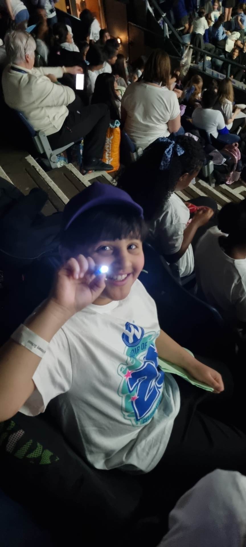 The children had a great time at the Wembley Arena singing with hundreds of other school children.